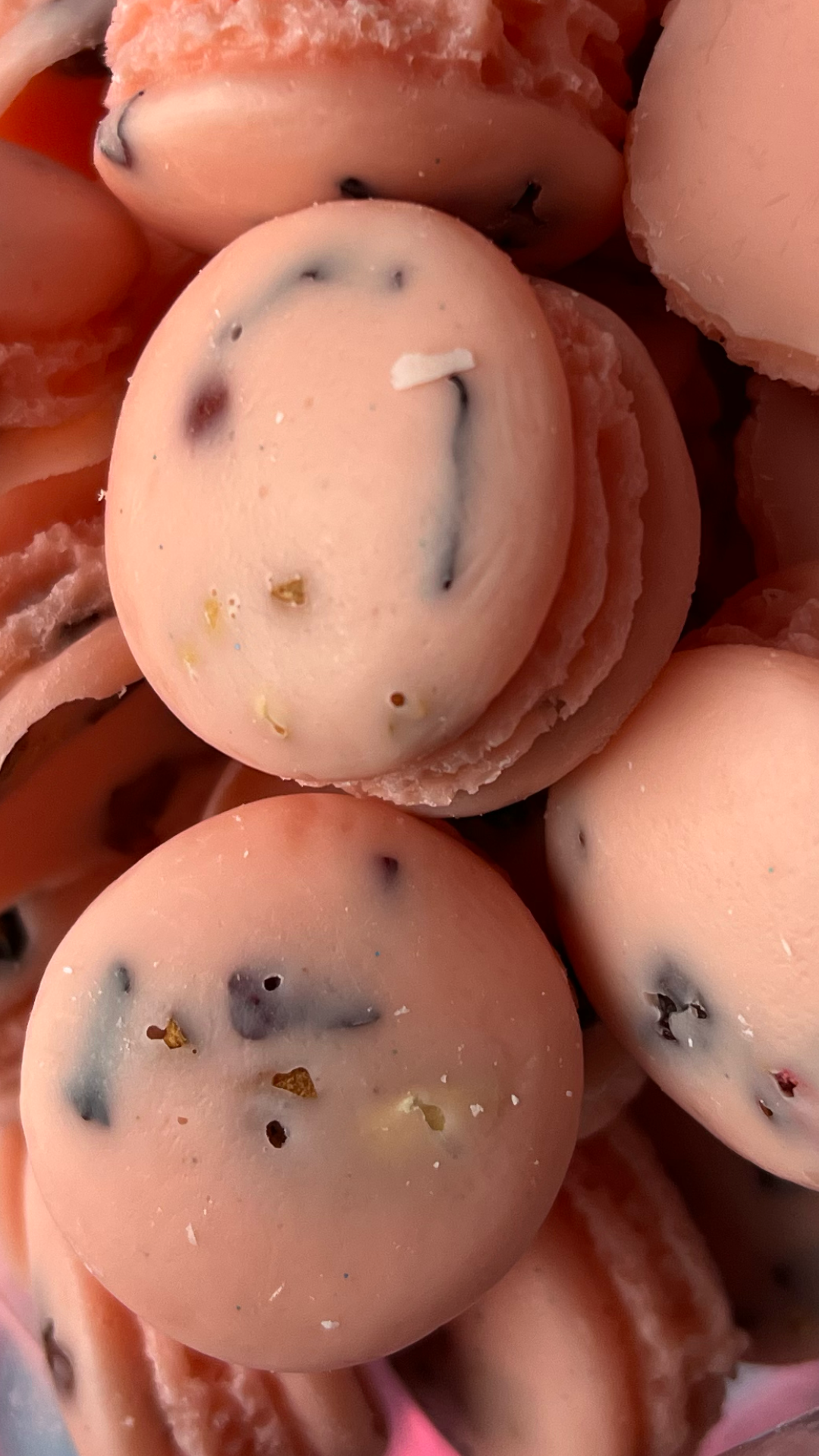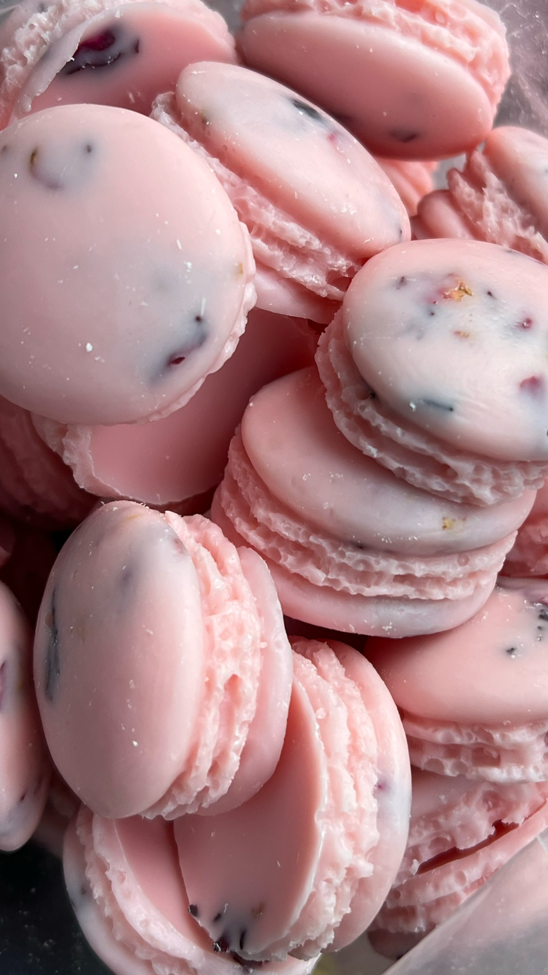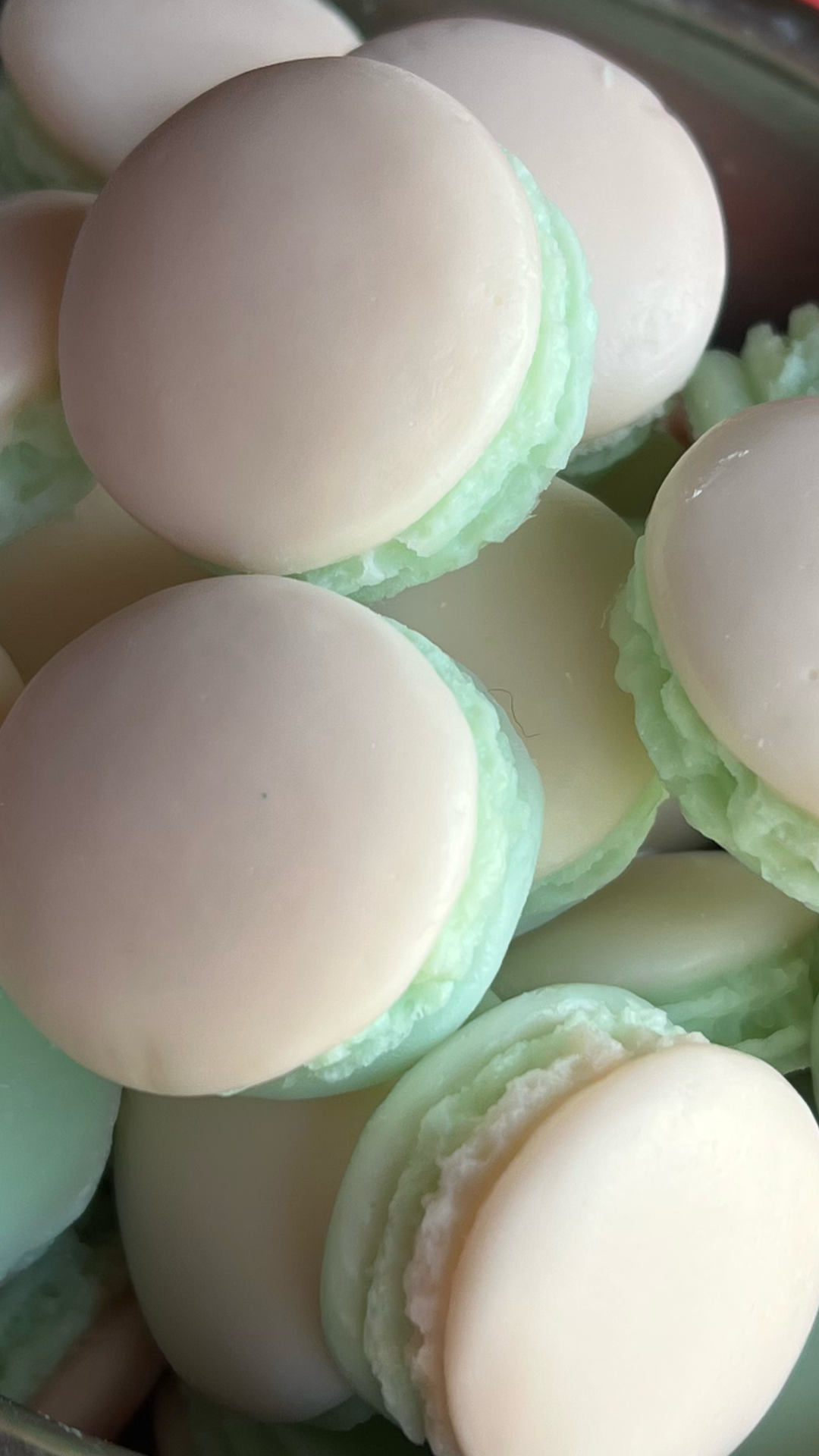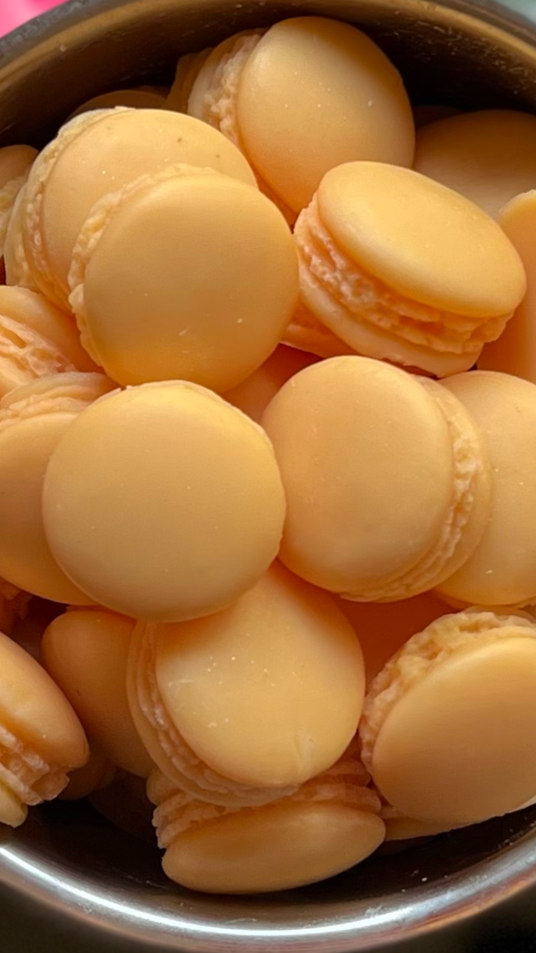 - Ein Duftwachs-Melt wiegt ca 15-20 Gramm und hat die Form eines Macarons