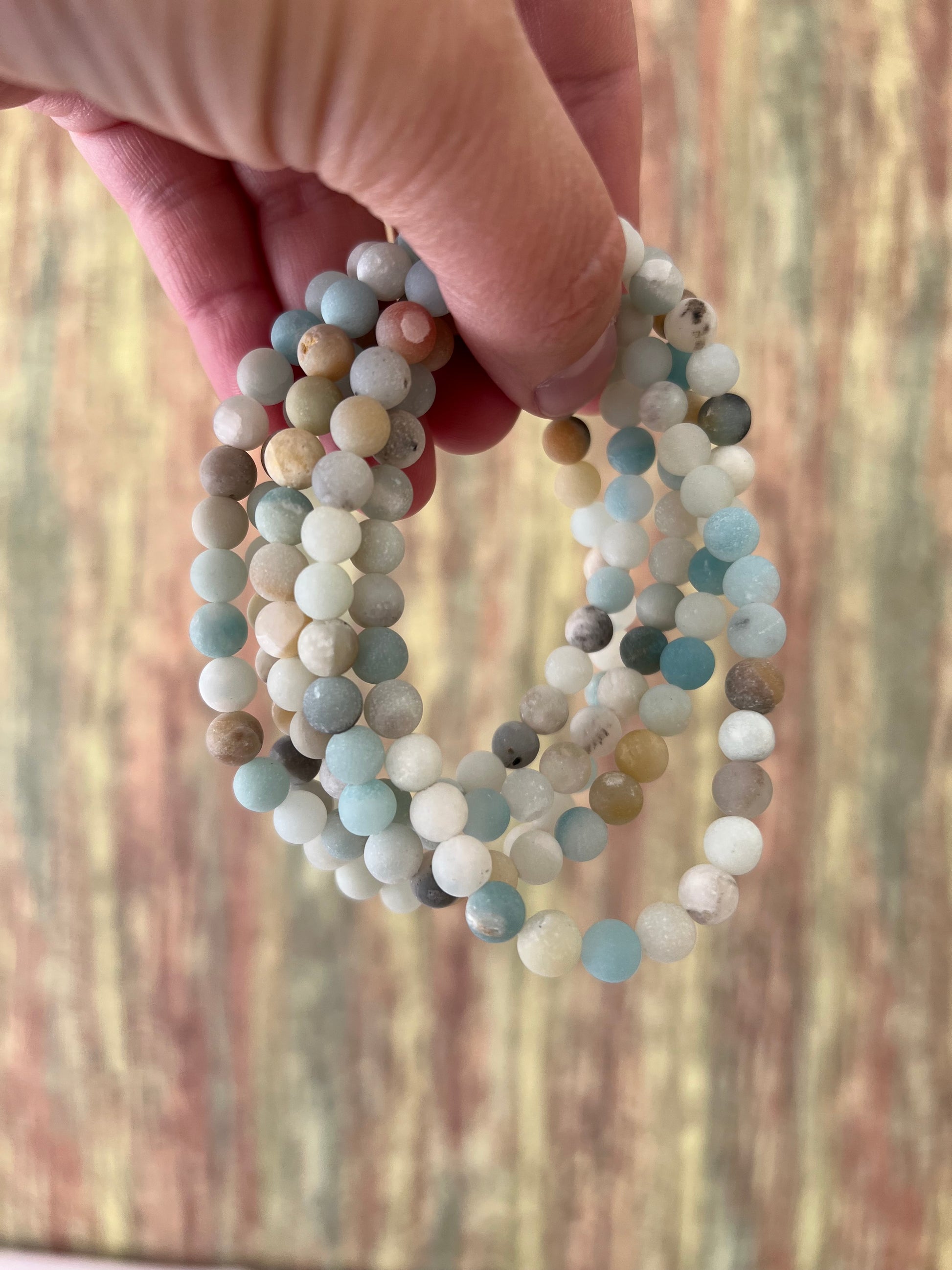 Dieses harmonische Armband aus echtem Amazonit besteht aus mattierten Edelsteinperlen (ca. 6 mm), die auf einem elastischen Band aufgefädelt sind. Die sanften Blau-Grün-Töne wirken durch das matte Finish besonders natürlich und ruhig – jedes Armband ist ein Unikat, das Gelassenheit und Erdverbundenheit ausstrahlt.