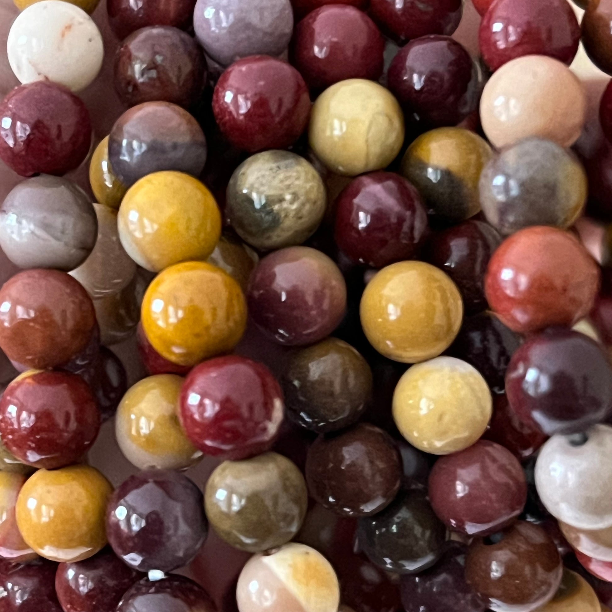 Dieses farbenfrohe Armband aus echtem Mookait Jaspis besteht aus runden, polierten Edelsteinperlen (ca. 6 mm), die auf einem elastischen Band aufgefädelt sind. Die harmonische Mischung aus Gelb-, Rot-, Creme- und Brauntönen verleiht jedem Armband eine warme, erdige Ausstrahlung – jedes Stück ist ein echtes Unikat der Natur.