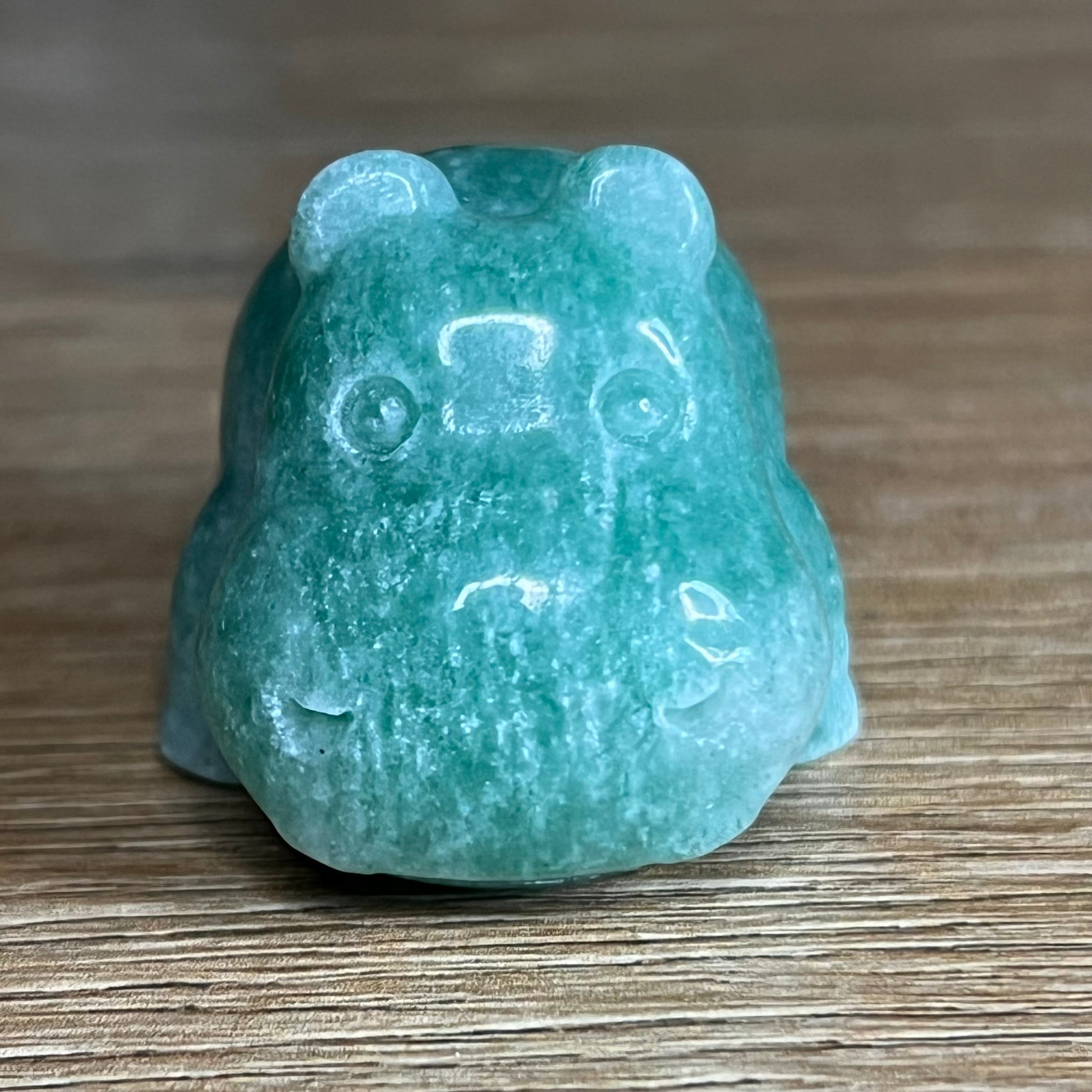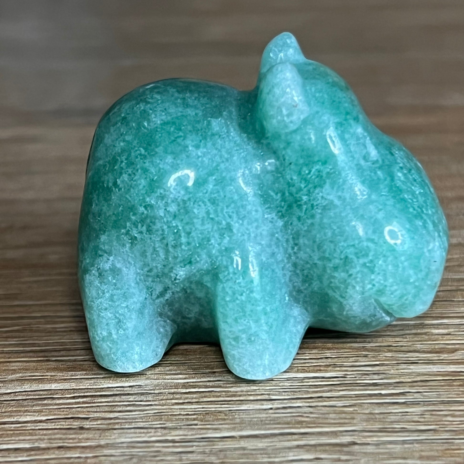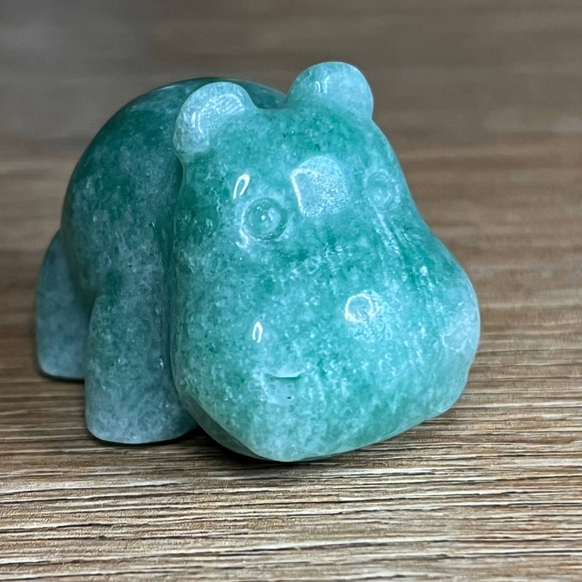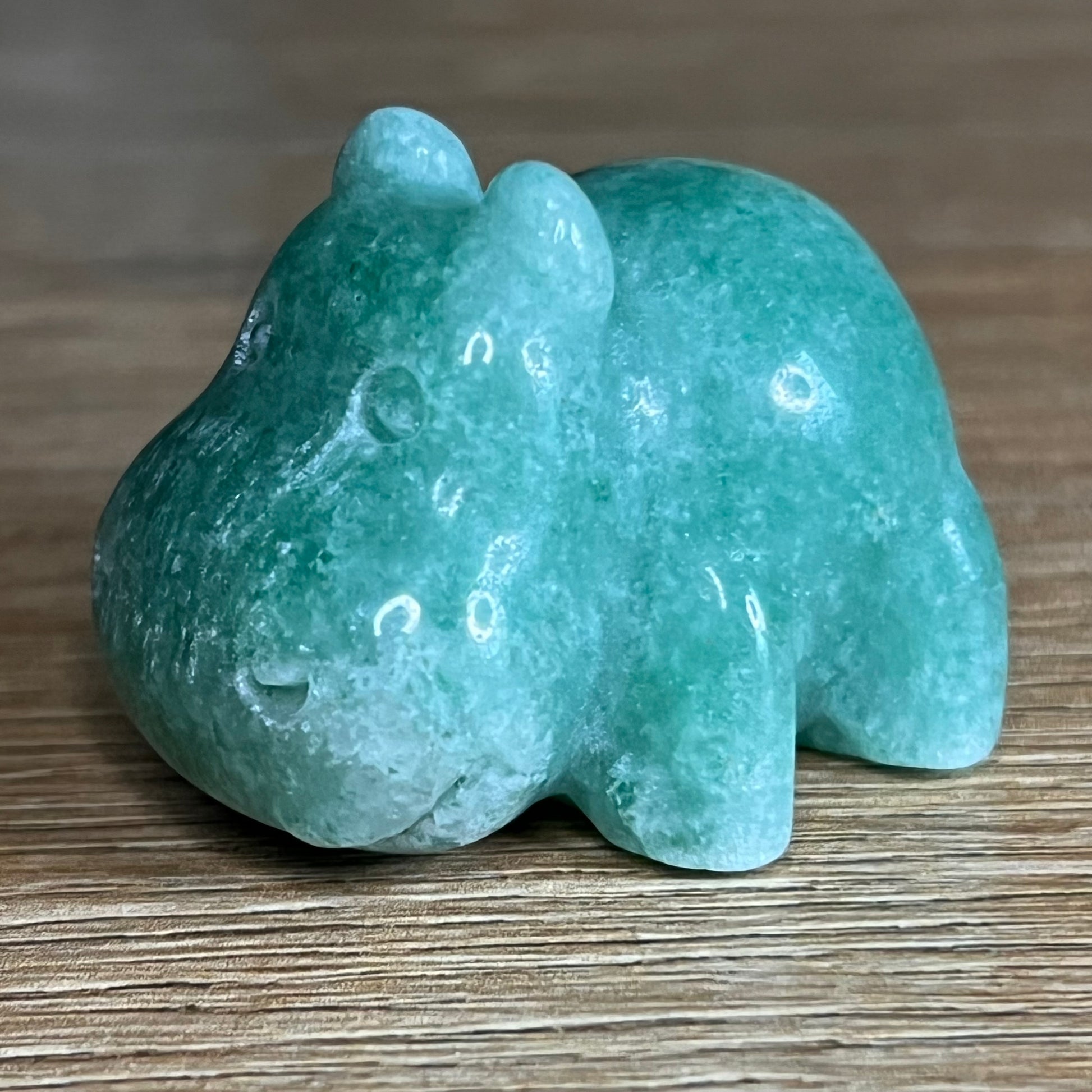 Dieses kleine Nilpferd aus grünem Aventurin steht für Optimismus, Mut und neue Chancen.