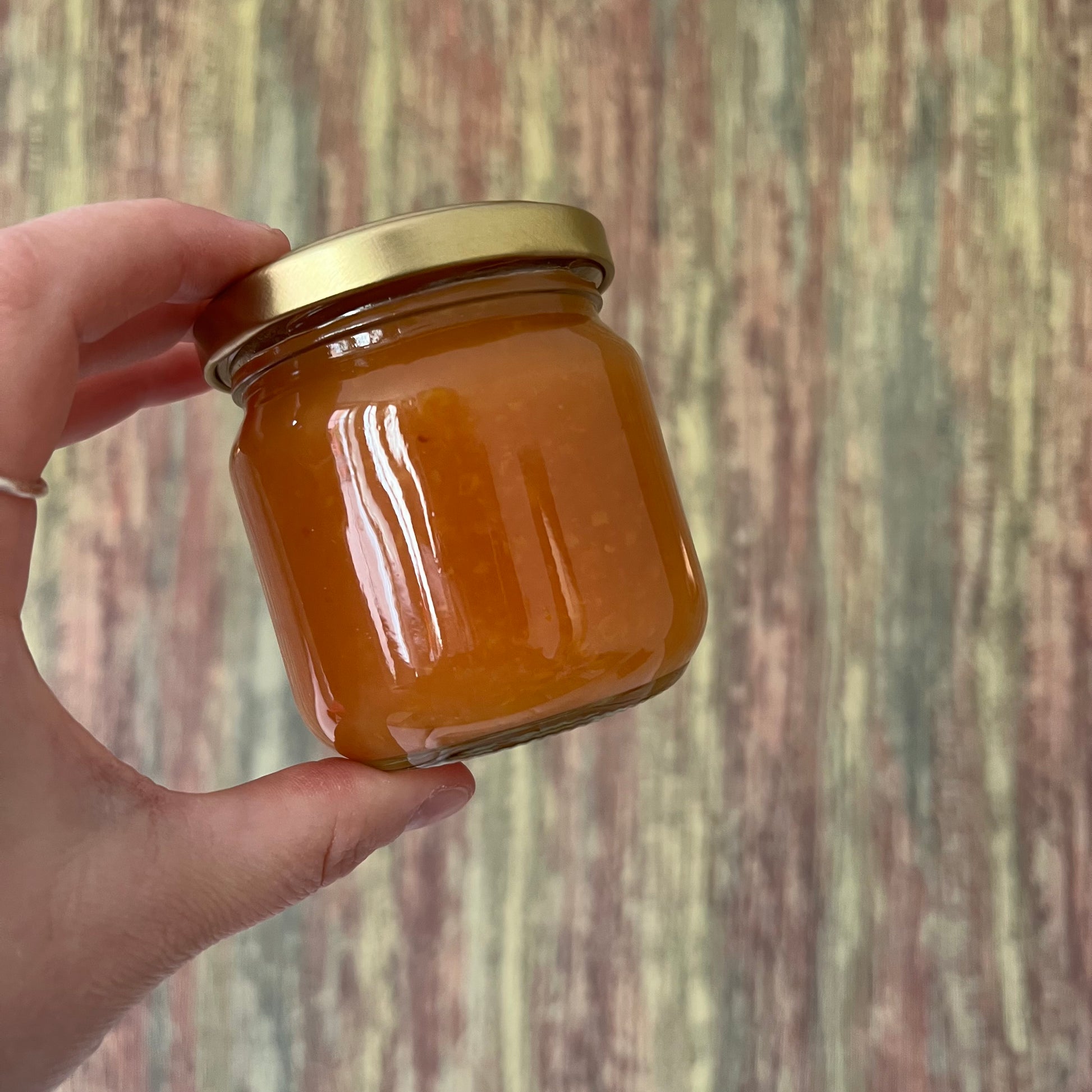 Dieser handgemachte Fruchtaufstrich leuchtet im Glas wie flüssiges Sonnenlicht und schmeckt mild, cremig und elegant.