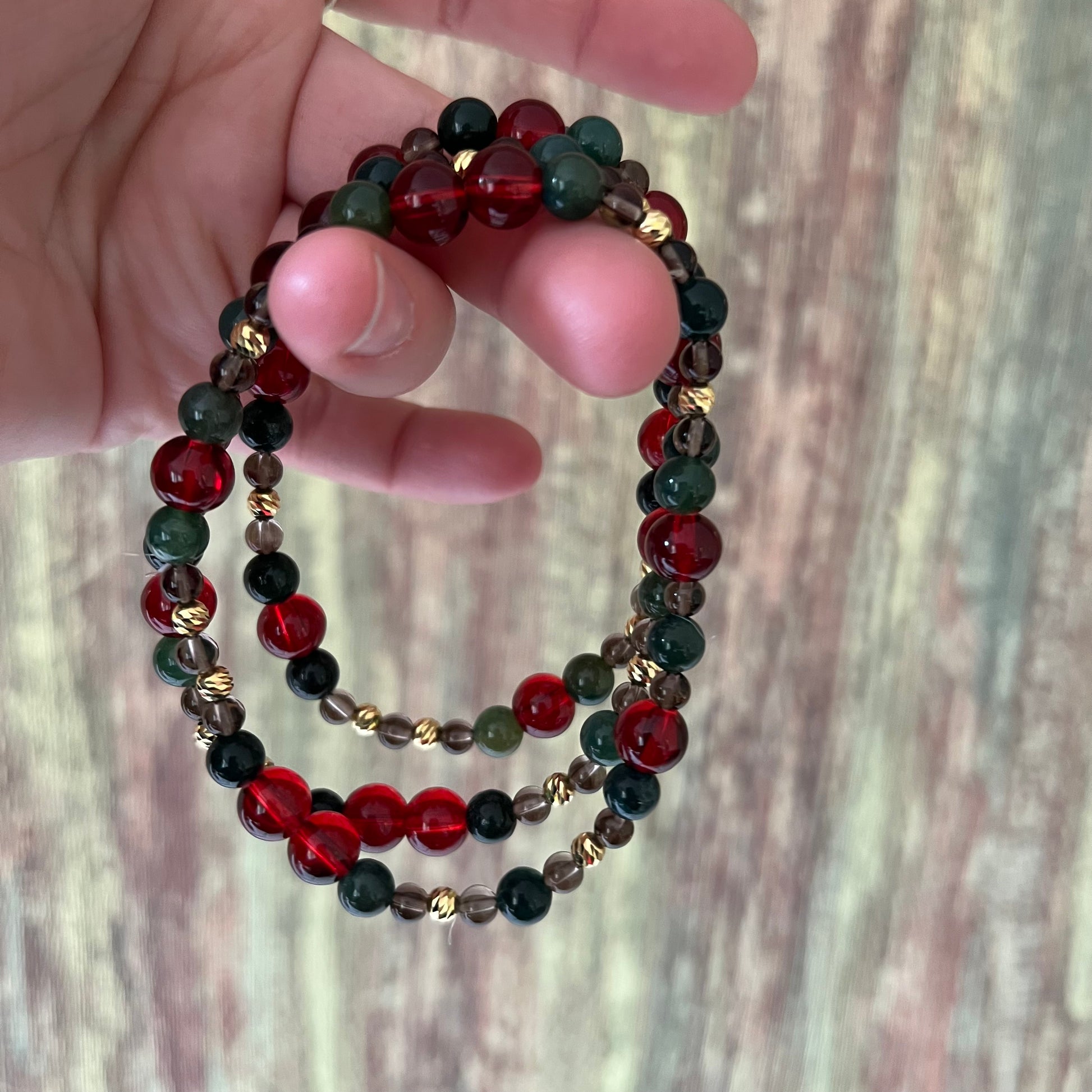 Dieses Edelsteinarmband vereint tiefe Rotnuancen, natürliche Grüntöne und feine, warme Lichtpunkte zu einem eleganten, harmonischen Schmuckstück. Der Granat in 8 mm bildet den intensiven Mittelpunkt und bringt kraftvolle Tiefe und eine edle Weinrotfarbe ins Design. Der Moosachat in 6 mm wirkt als natürlicher Ausgleich: seine grünen Maserungen schaffen einen weichen Übergang und verleihen dem Armband eine organische, waldartige Note.