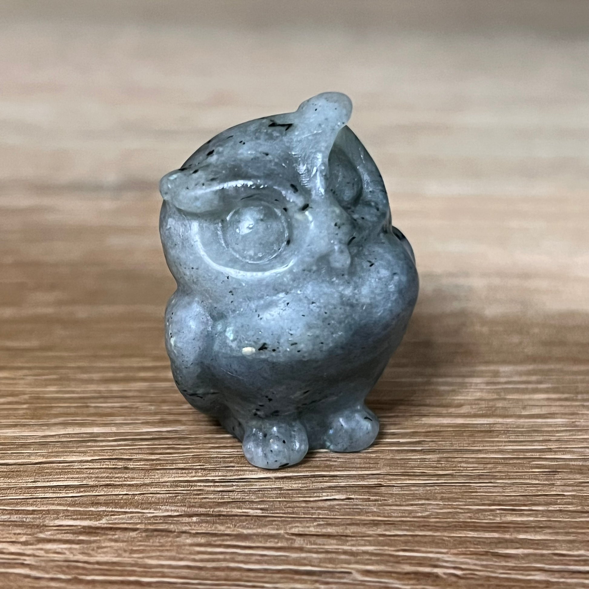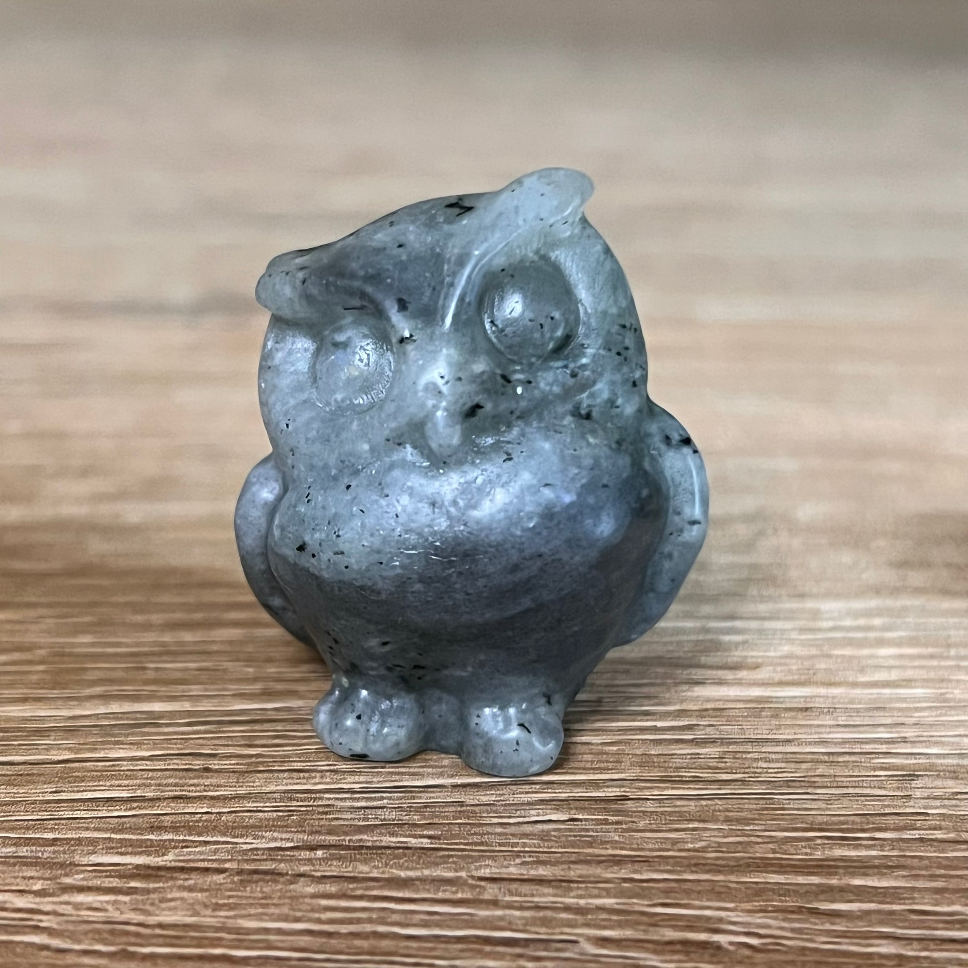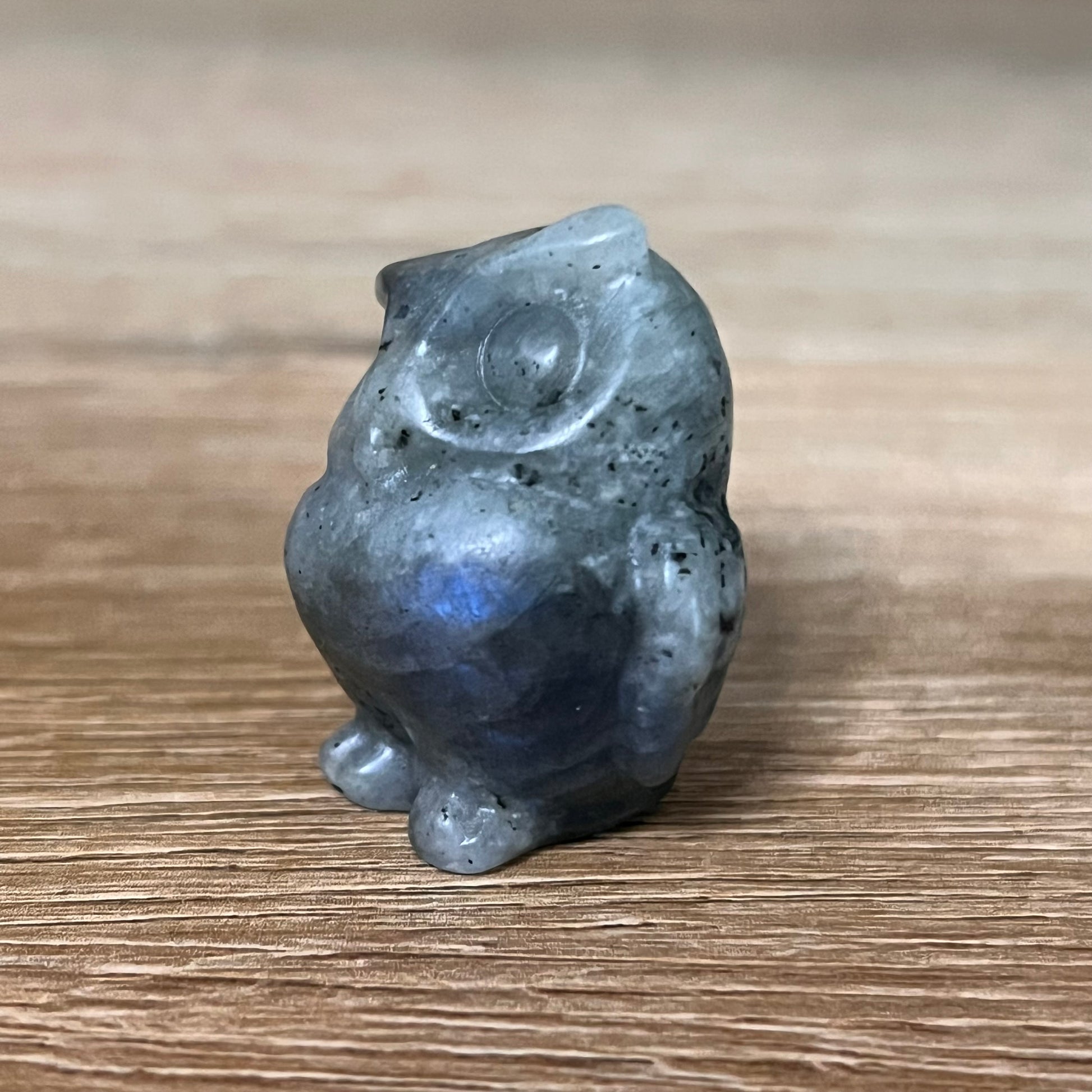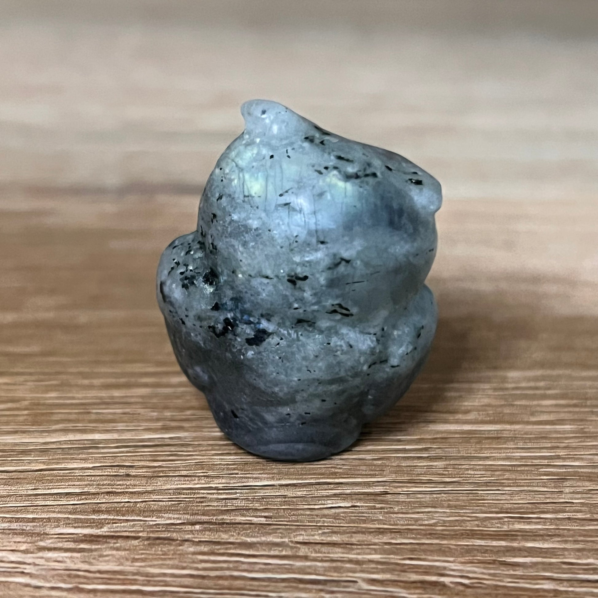 Diese kleine Eule aus schimmerndem Labradorit steht für Intuition, Schutz und innere Stärke.